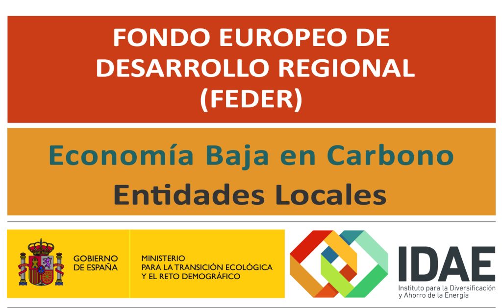 Parte de esta actuación ha sido financiada por la línea de ayudas a proyectos de Economía Baja en Carbono, promovidos por Entidades Locales, cofinanciada por el Fondo Europeo de Desarrollo Regional (FEDER) y gestionada por el IDAE, con el objetivo de conseguir una economía más limpia y sostenible.